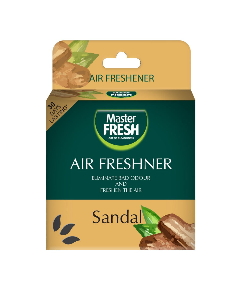 Master Fresh Sandal Air Freshener Block delivers long-lasting fragrance with the timeless appeal of natural sandalwood. Engineered for consistent scent release, this solid block freshener effectively neutralizes odors in any room, vehicle, or enclosed space. The compact design fits seamlessly into tight corners, shelves, or car interiors without taking up valuable space. Experience the calming, woody aroma of premium sandalwood that transforms stale air into a refreshing environment. Ideal for homes, offices, and vehicles seeking sustained fragrance performance.