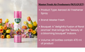 The accompanying text highlights the product's benefit: "Bring the beauty of a blooming bouquet into your home with every spray. Let the delightful fusion of floral notes infuse your space with the essence of a breathtaking garden in full bloom." This description positions the product as a way to easily introduce the fresh, vibrant scent of a garden into any room.