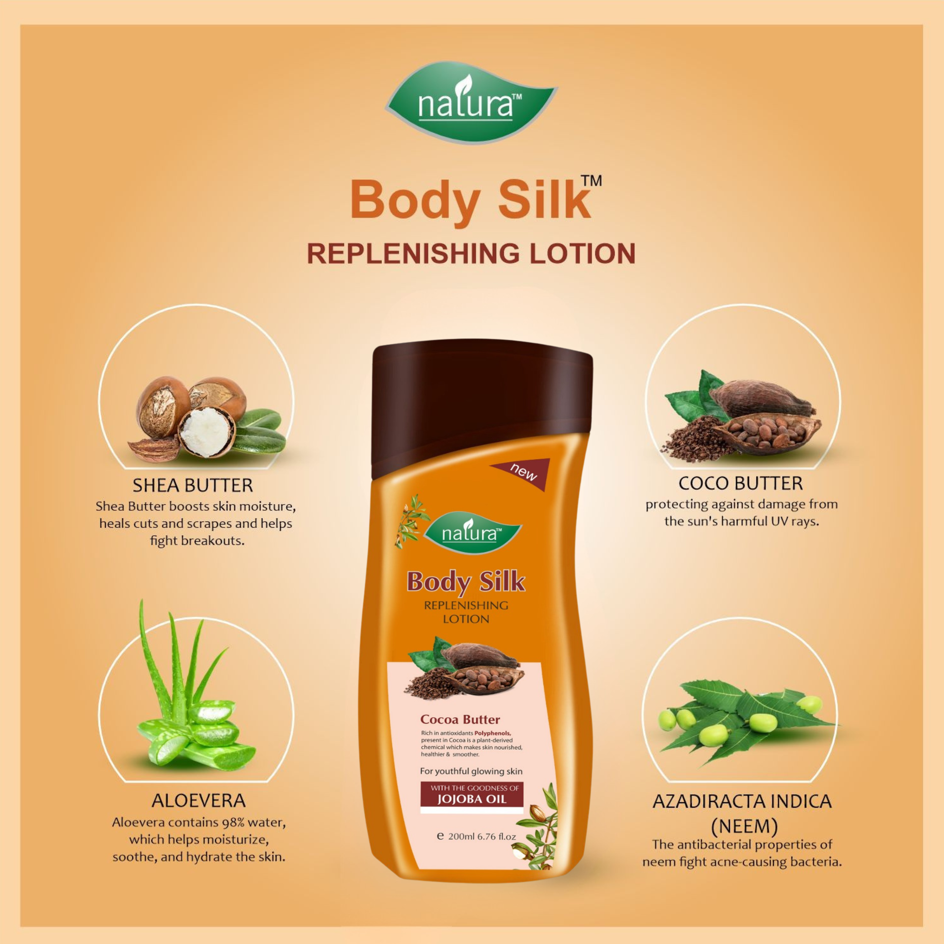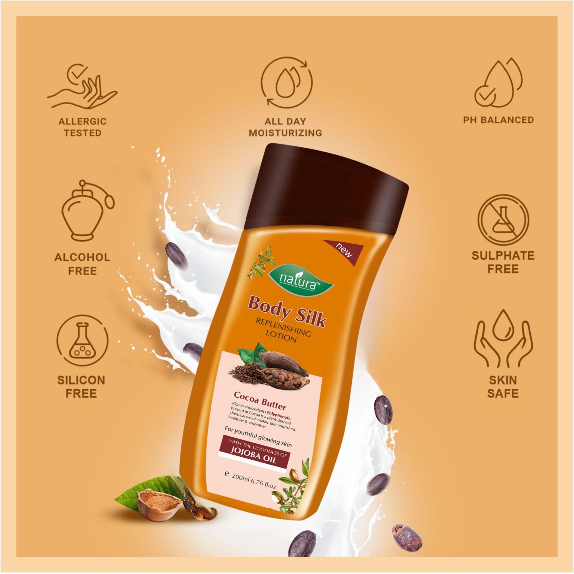 FOR SOFT AND GLOWING SKIN: This is a replenishing body lotion enriched with magical properties of Cocoa butter and Shea butter. A wonderful moisturizer with a wonderful fragrance for all skin type, surely you are going to fall in love with this body silk lotion.